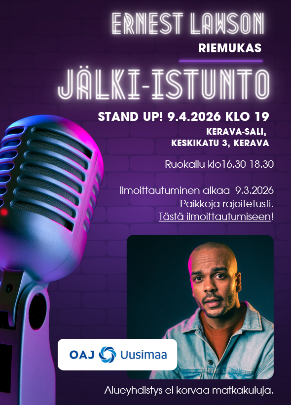 OAJ Uudenmaan Kevätkokouksen 9.4.2026 yhteydessä Ernest Lawsonin Stand up -keikka.